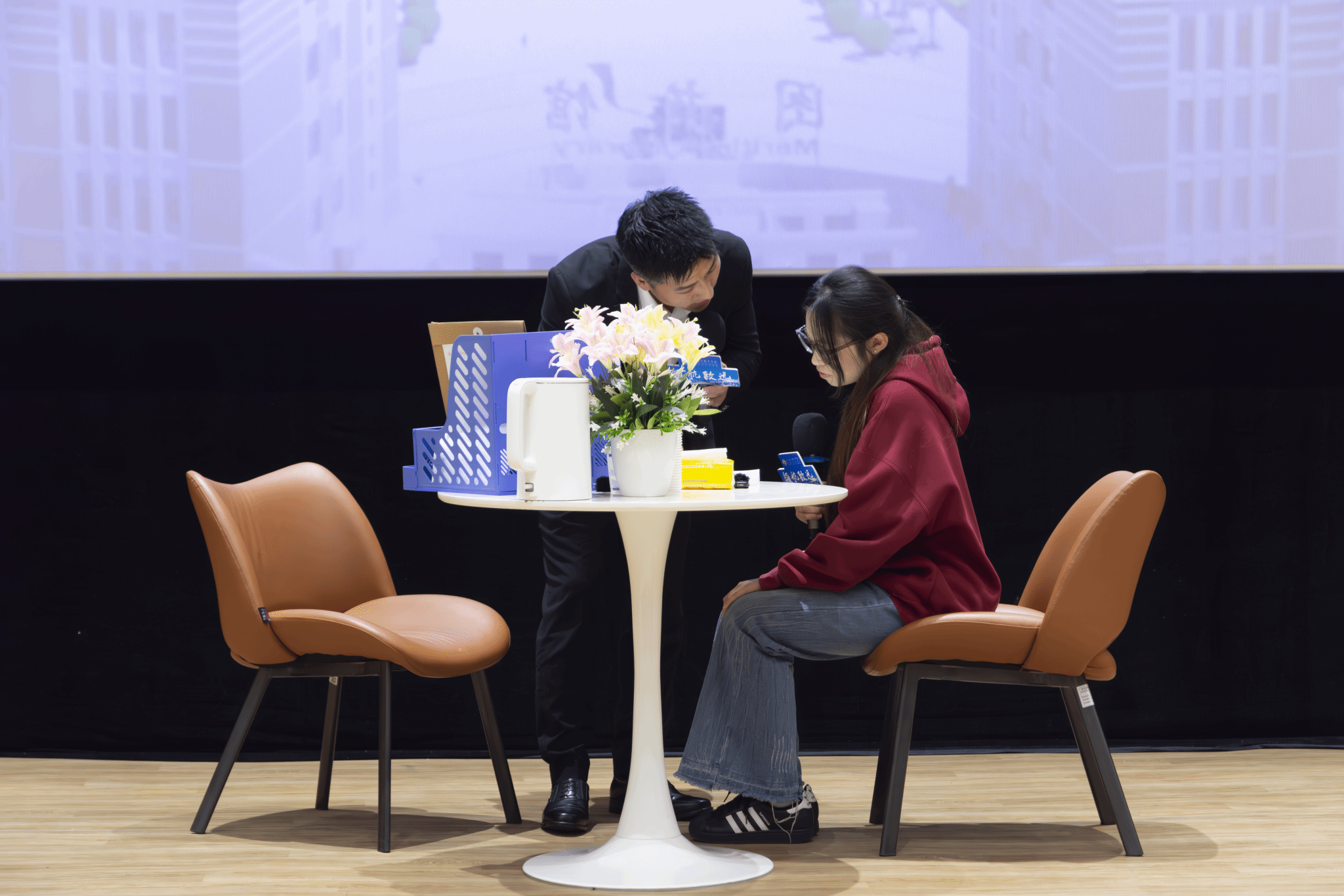 决赛现场,辅导员们围绕学生成长过程中的真实情境与典型问题,展开深入剖析与暖心对话。他们以专业的教育技巧、共情的沟通姿态和智慧的教育引导,呈现出一场场“以心育心”的精彩展示。