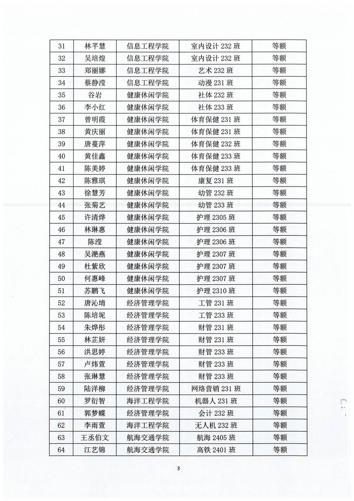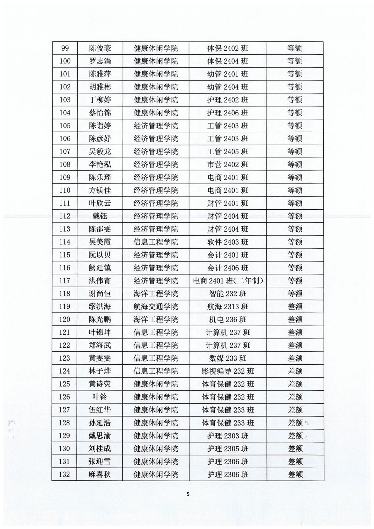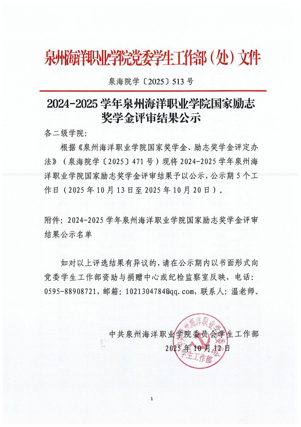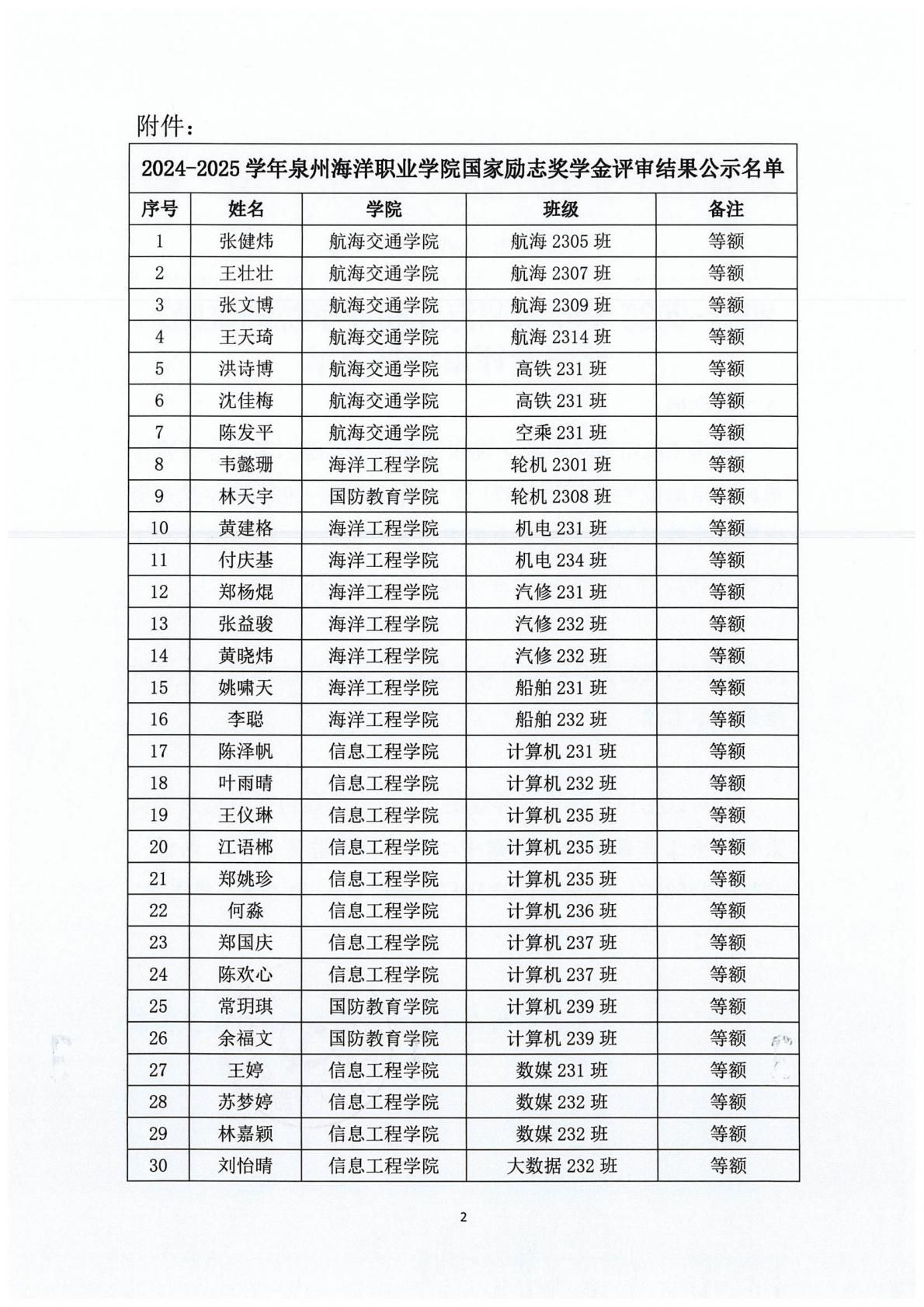 泉州海洋职业学院2024-2025学年国家励志奖学金评审结果公示